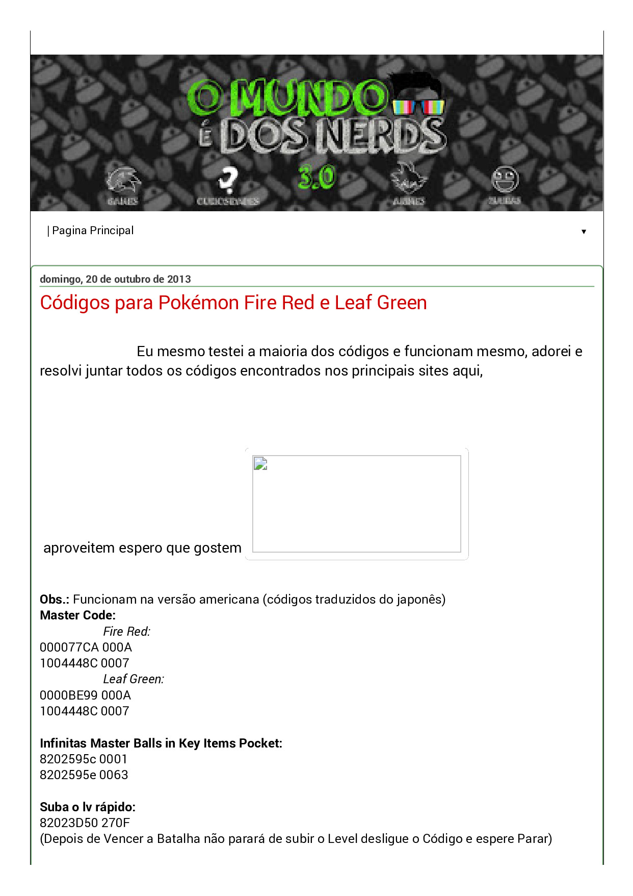 Códigos Pokémon Fire Red e Leaf Green