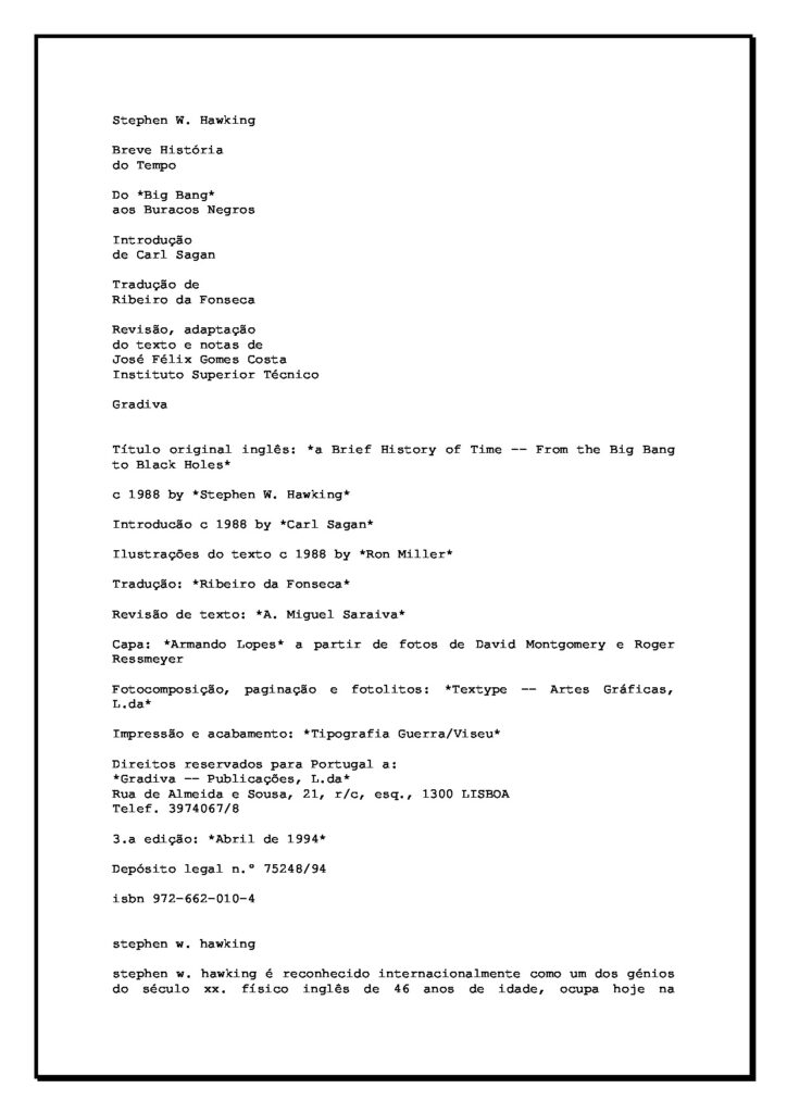 apaixonadamente *breve história do tempo*, recentemente publicado nos