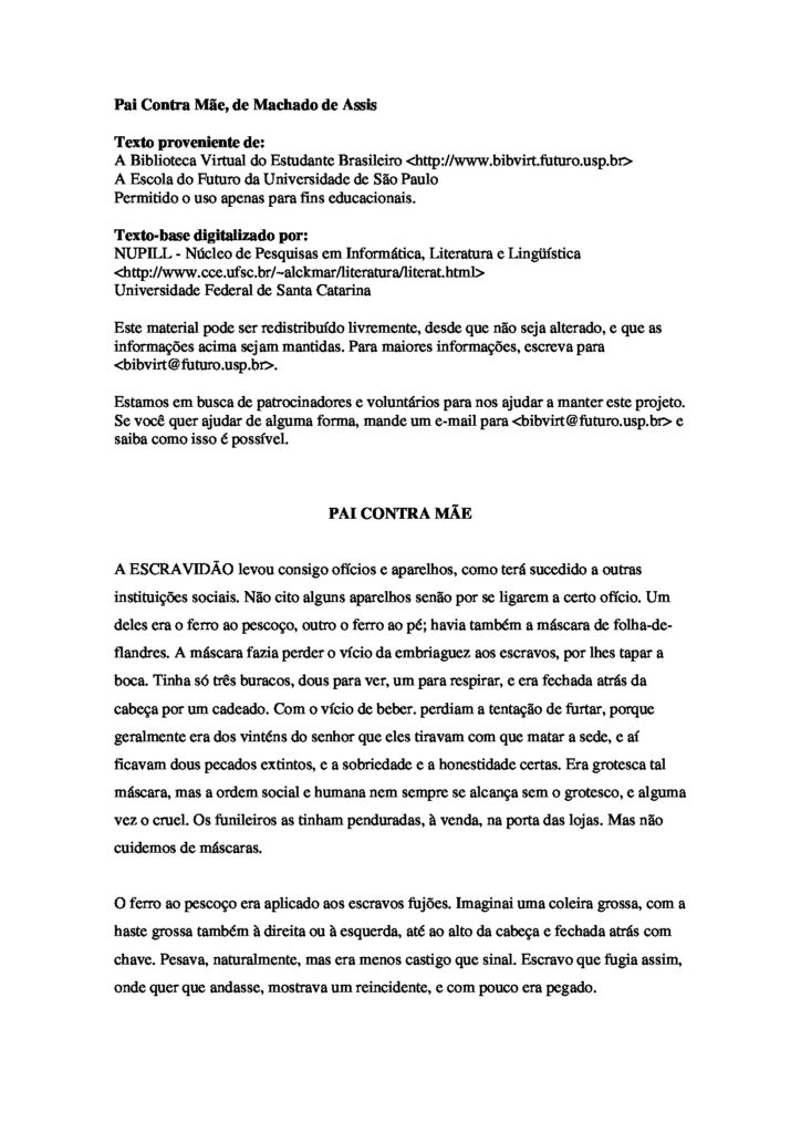 Pai Contra Mãe, de Machado de Assis
