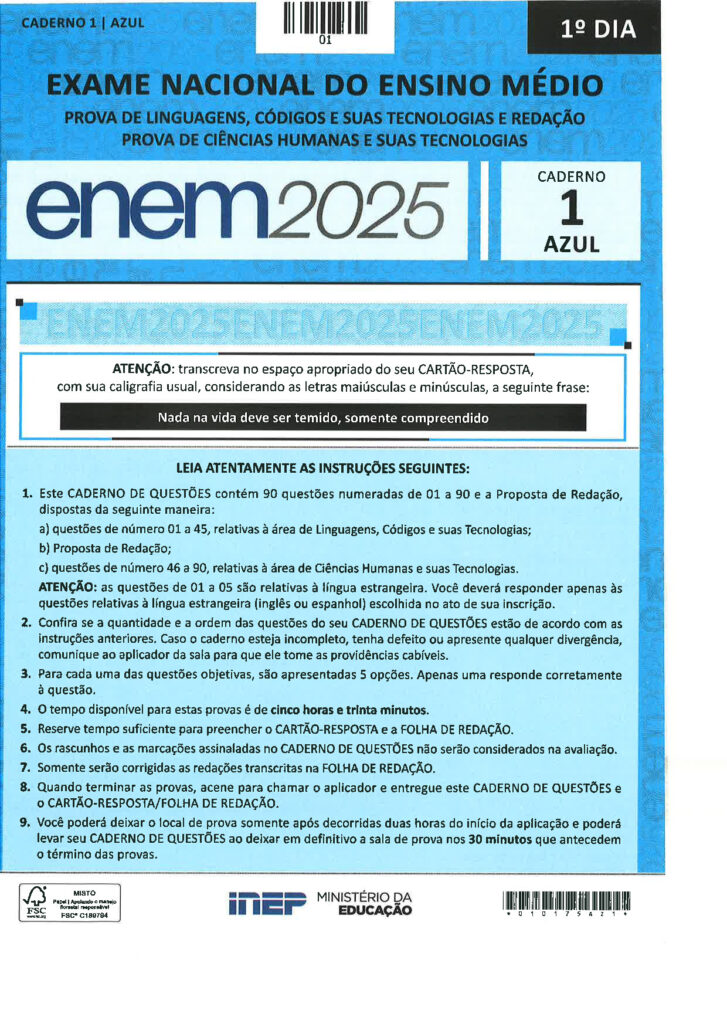 Prova Enem Primeiro Dia Caderno Azul – 2025